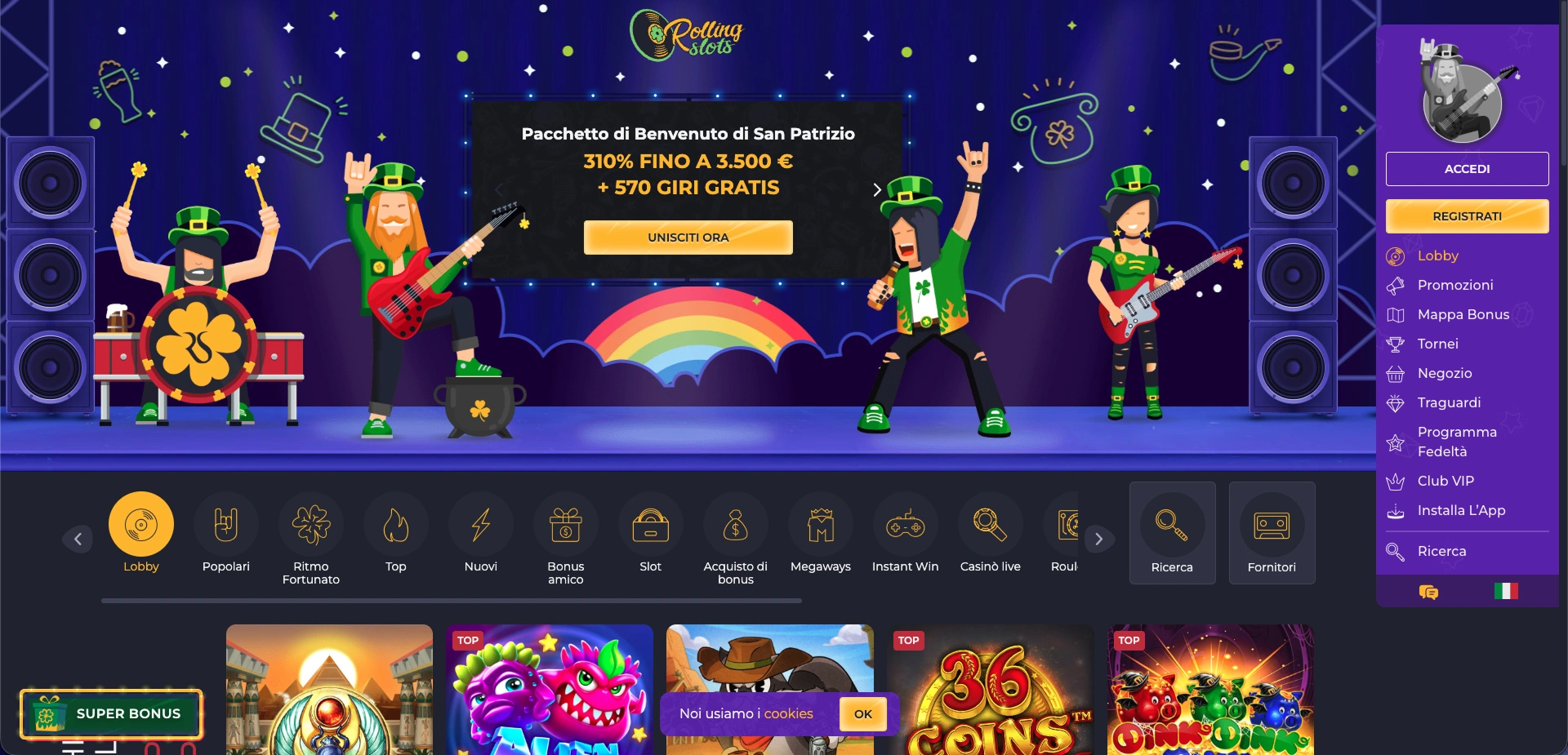 La piattaforma si distingue per la sua interfaccia intuitiva e per la vasta selezione di slot machine delle migliori piattaforme mondiali. Rolling Slots è la scelta ideale per chi cerca un casino non AAMS affidabile con bonus eccezionali.